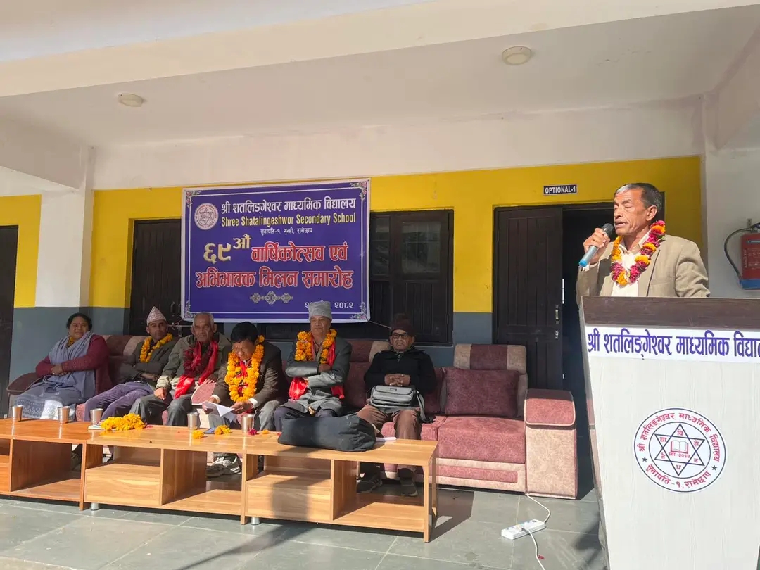 रामेछापको सुनापति गाउँपालिकास्थित ऐतिहासिक शैक्षिक धरोहर शतलिङ्गेश्वर माध्यमिक विद्यालयले आफ्नो ६९ औँ वार्षिकोत्सव तथा अभिभावक मिलन समारोह–२०८२ एक भव्य समारोहका बीच सम्पन्न गरेको छ। विद्यालय प्राङ्गणमा आयोजित उक्त कार्यक्रममा शिक्षा, राजनीति र समाजसेवाका विशिष्ट व्यक्तित्वहरूको बाक्लो उपस्थिति रहेको थियो।